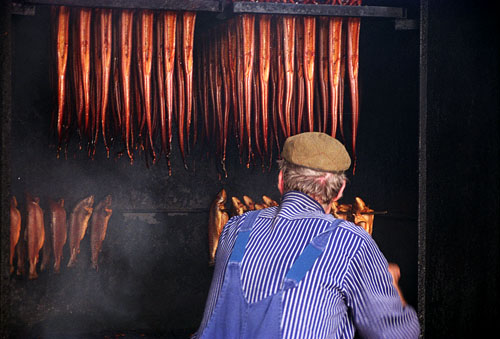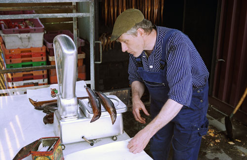 - Jensen wiegt seine selbst geräucherten Aale genau