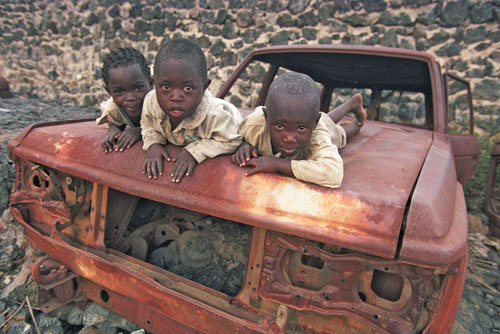 - Flüchtlingskinder in Goma haben die rostigen Autowracks