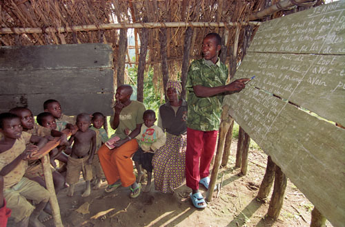 - Die Dorfschule in Matanda von innen. Statt einem Gehalt